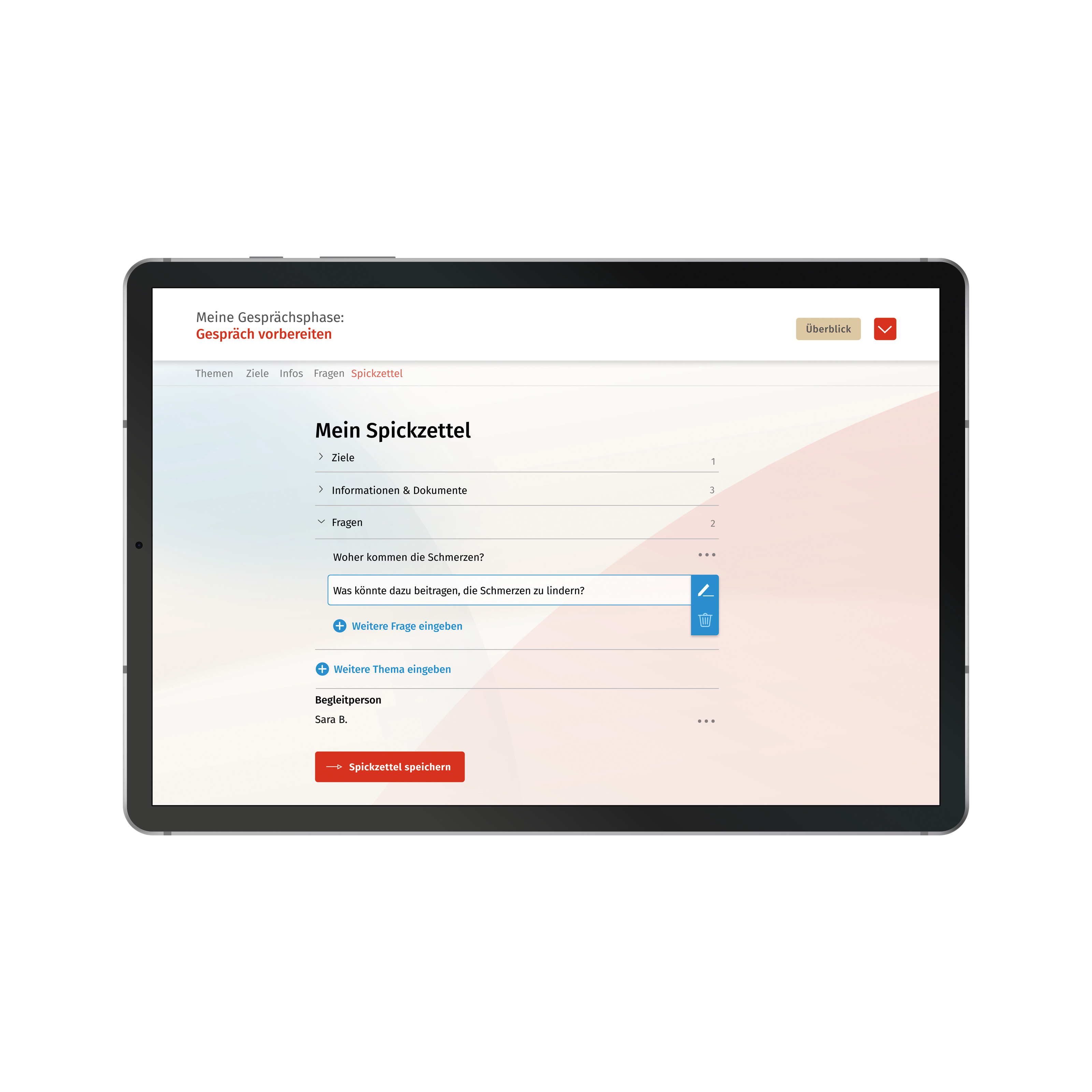 Selbstverständlich. Sie können EverAsk auch als Begleitperson nutzen. So helfen Sie der Patientin oder dem Patienten, an die wichtigen Fragen zu denken und können die Antworten der Ärztin oder dem Arzt gleich notieren.