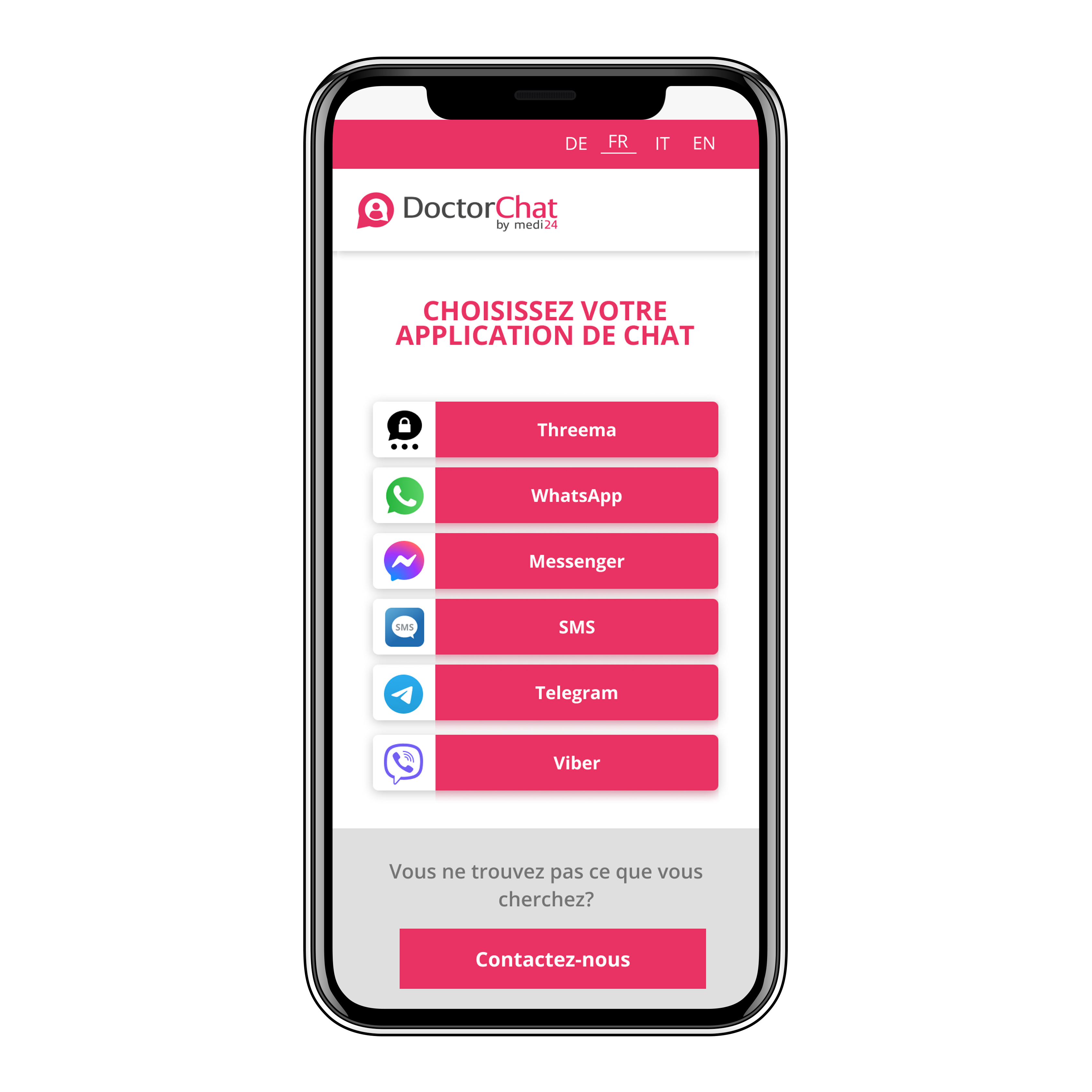 "DoctorChat" est instantané, simple et disponible partout 24 h sur 24. Après une rapide inscription, vous sélectionnez le canal de communication souhaité et soumettez votre question de santé. Votre demande est alors transmise à l’aide de l’intelligence artificielle à un vrai médecin compétent. Ce dernier répond à votre question dans les plus brefs délais sur le canal choisi, et émet gratuitement son avis de professionnel.