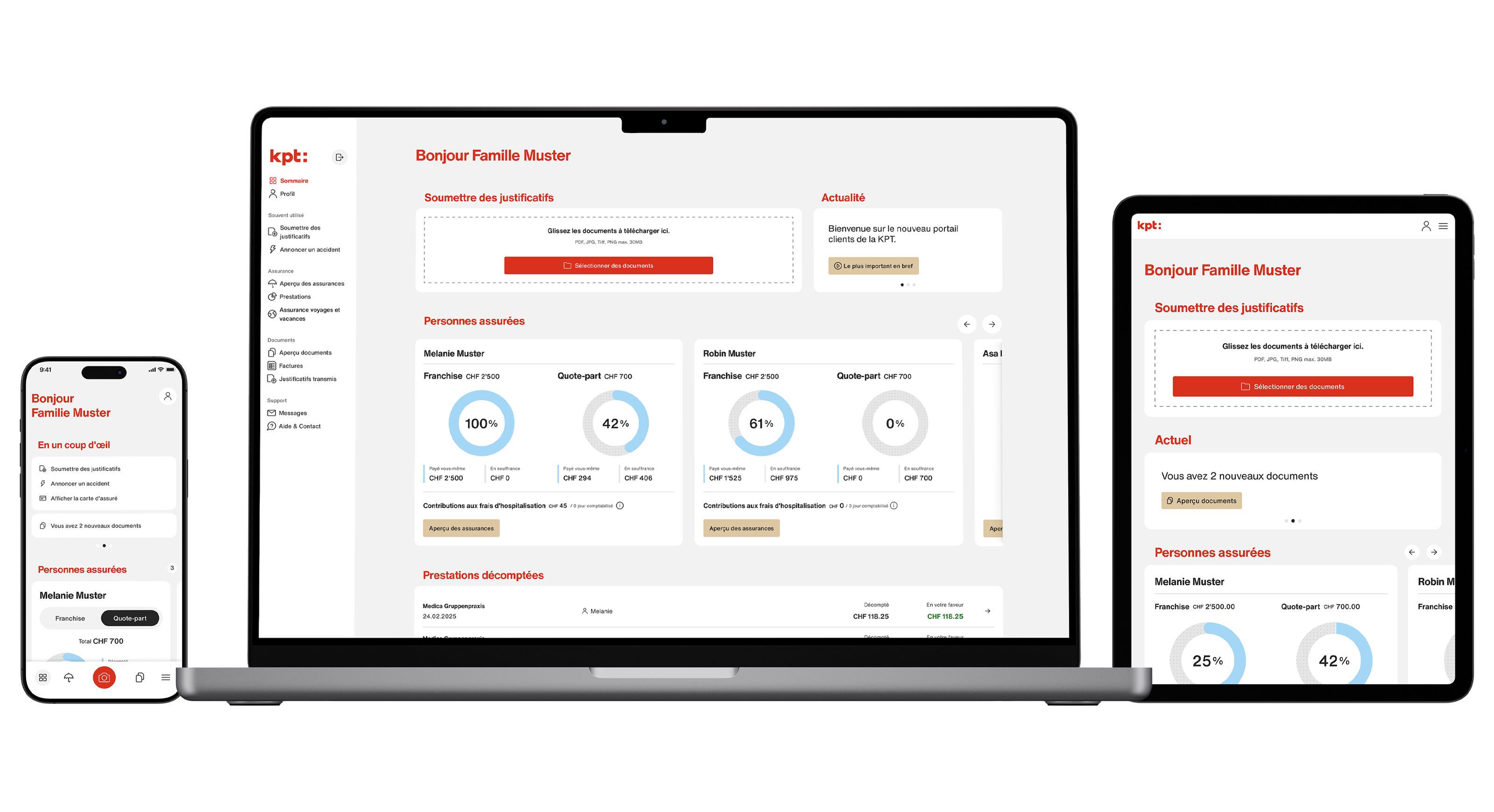 Votre conseillère clients ou votre conseiller clients est également à votre disposition via KPTnet et l’application KPTnet. N’hésitez pas à nous envoyer un message dans le menu «Messages».