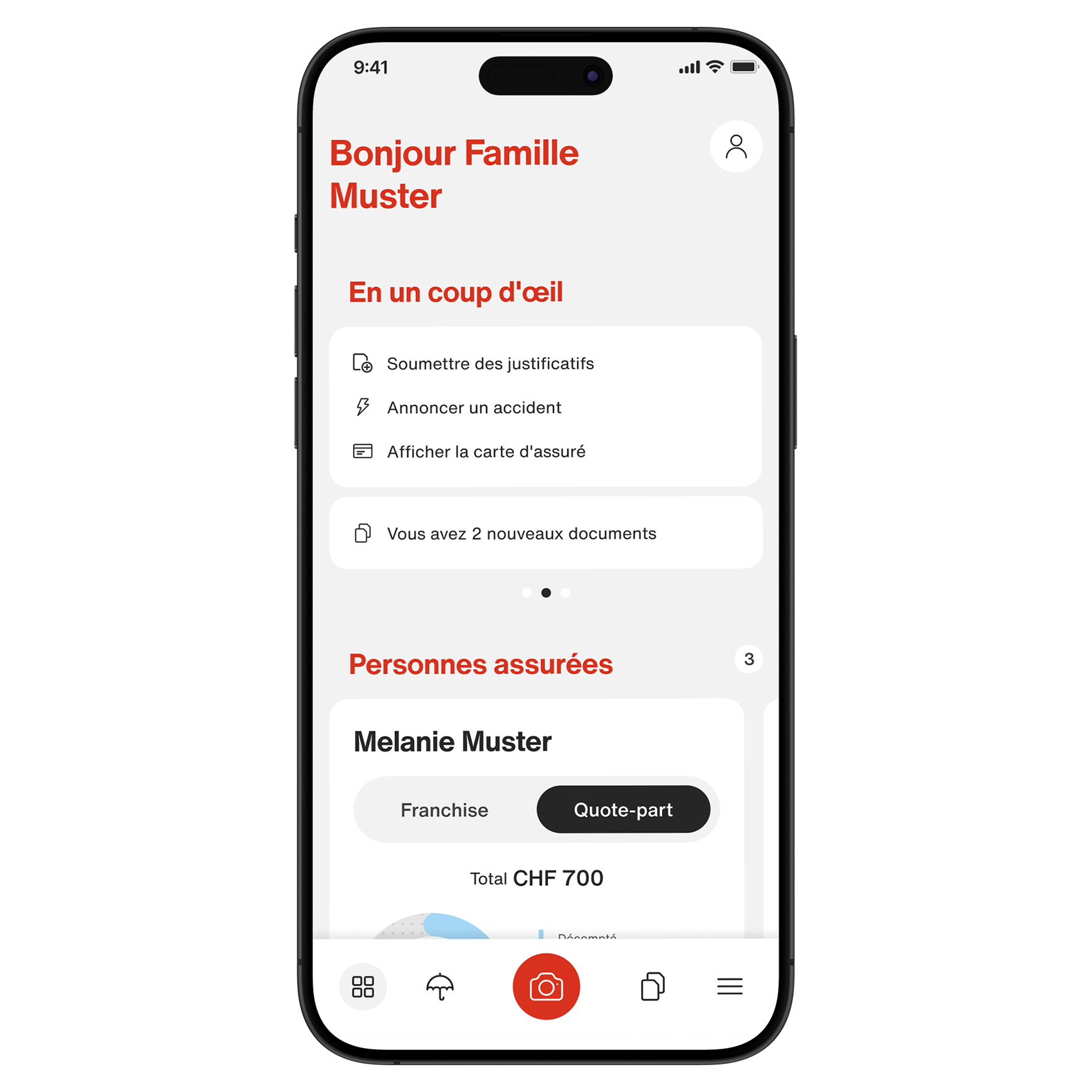 Vous avez à tout moment une vue d’ensemble des prestations, de la franchise, de la quote-part et des factures médicales transmises.