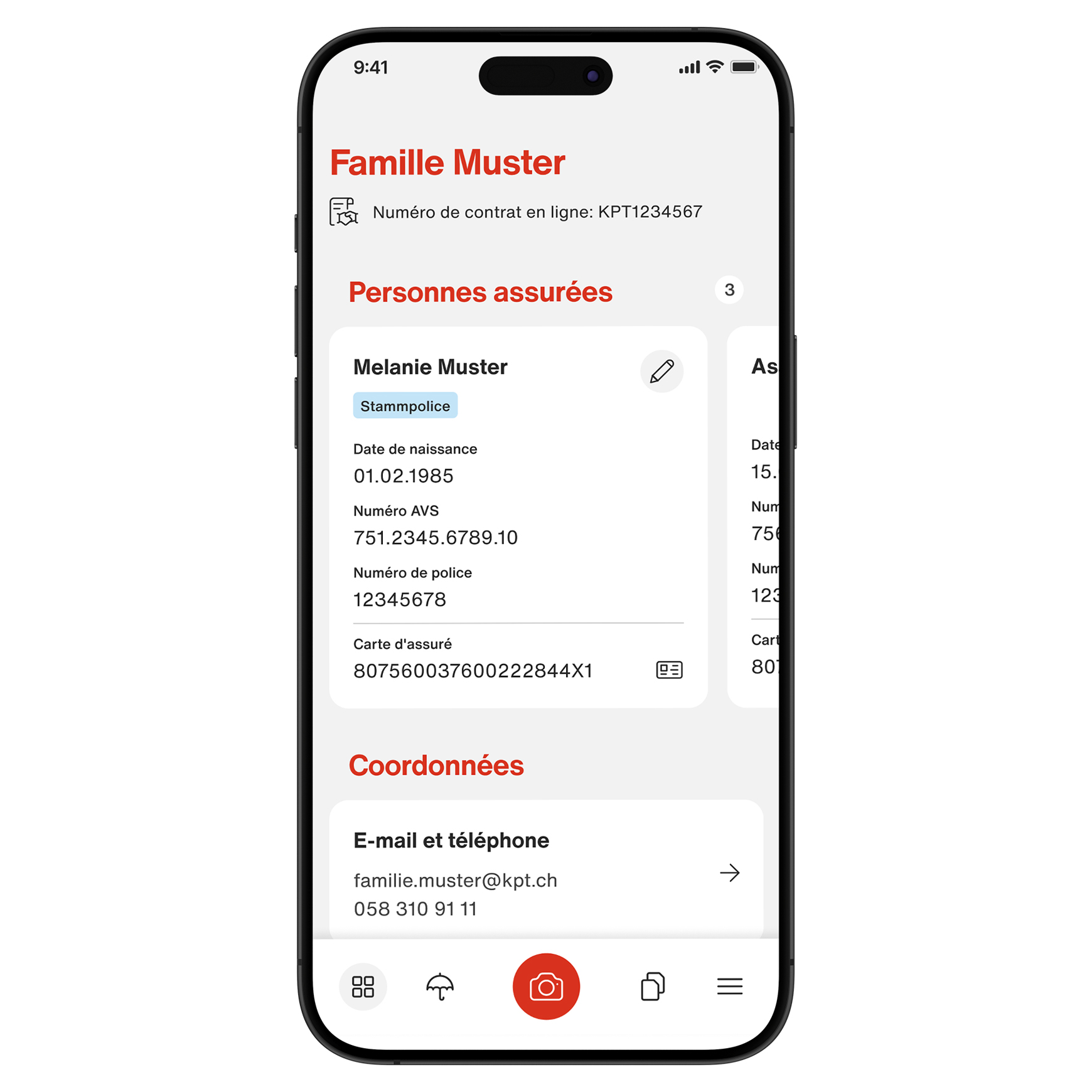 Vous bénéficiez d’un accès à tous vos contrats, où et quand vous le voulez. Une solution qui peut s’avérer très pratique dans différentes situations: à l’étranger, à l’hôpital, en cas d’urgence ou tout simplement pour poser rapidement une question à votre conseillère ou conseiller clients.
