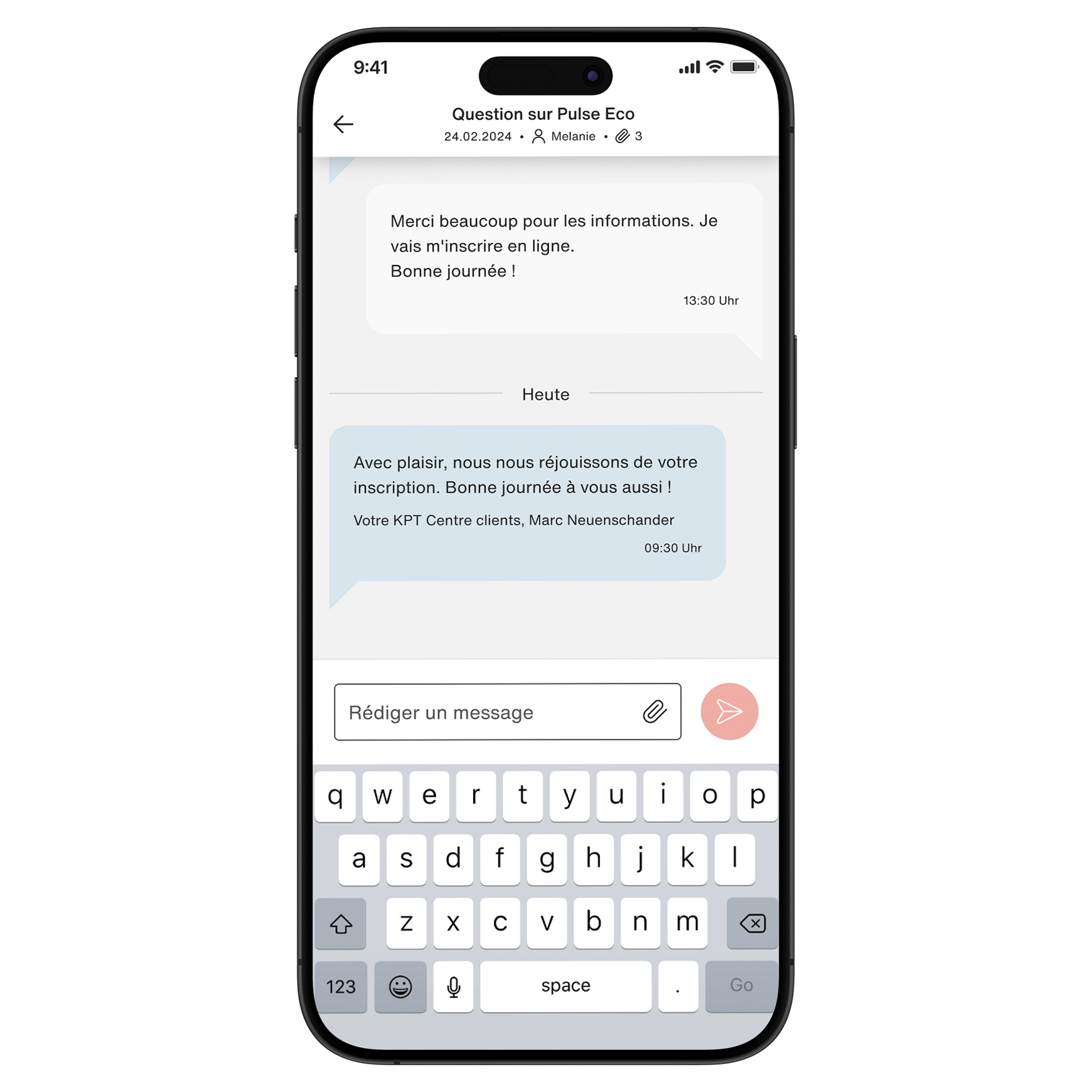 L’app KPT ne permet pas uniquement d’avoir accès à vos données d’assurance où et quand vous le souhaitez. Vous pouvez également prendre une photo de vos factures de médecin et les envoyer, modifier vos données personnelles et contacter directement votre conseillère ou votre conseiller clients. De plus, vous gardez à tout moment une vue d’ensemble sur les prestations, la franchise et la quote-part.