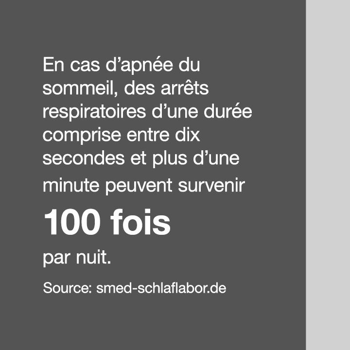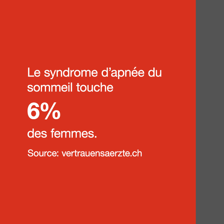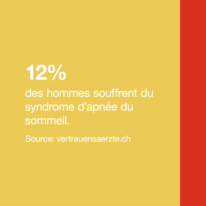 «Selon des études, plus de 500 000 personnes en Suisse souffrent d’apnée du sommeil, les hommes étant deux fois plus souvent touchés que les femmes (cela concerne plus de 12% de la population masculine).»