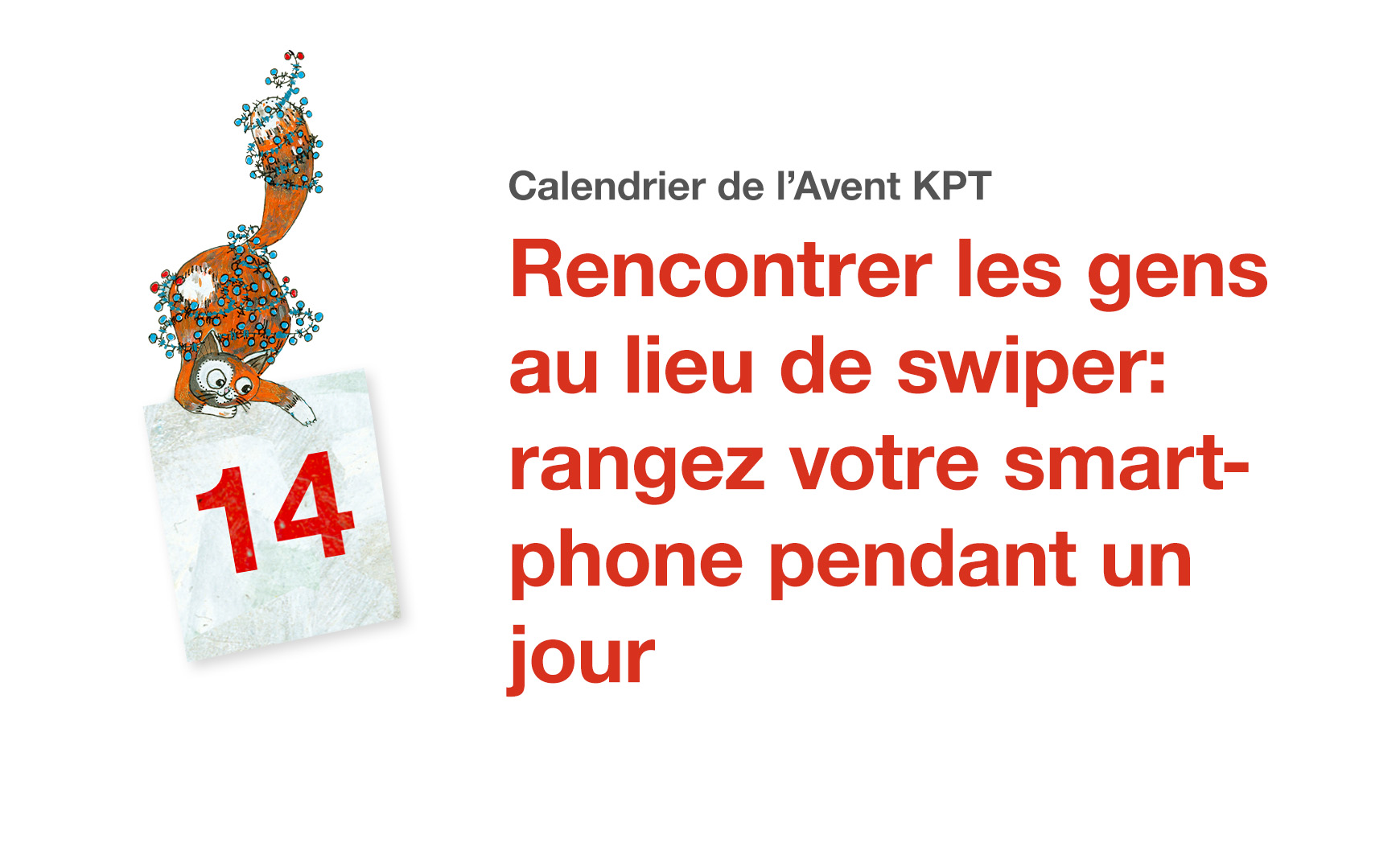 Vous passez beaucoup de temps sur votre smartphone et d’autres appareils? Ça n’est pas forcément un souci, mais un jour sans écran de temps à autre pourrait vous faire du bien. Mettez vos appareils de côté et passez la journée avec d’autres êtres humains – en face à face. Cela vous donnera des idées et, qui sait, peut-être que le lendemain vous gérerez votre temps d’écran plus délibérément.