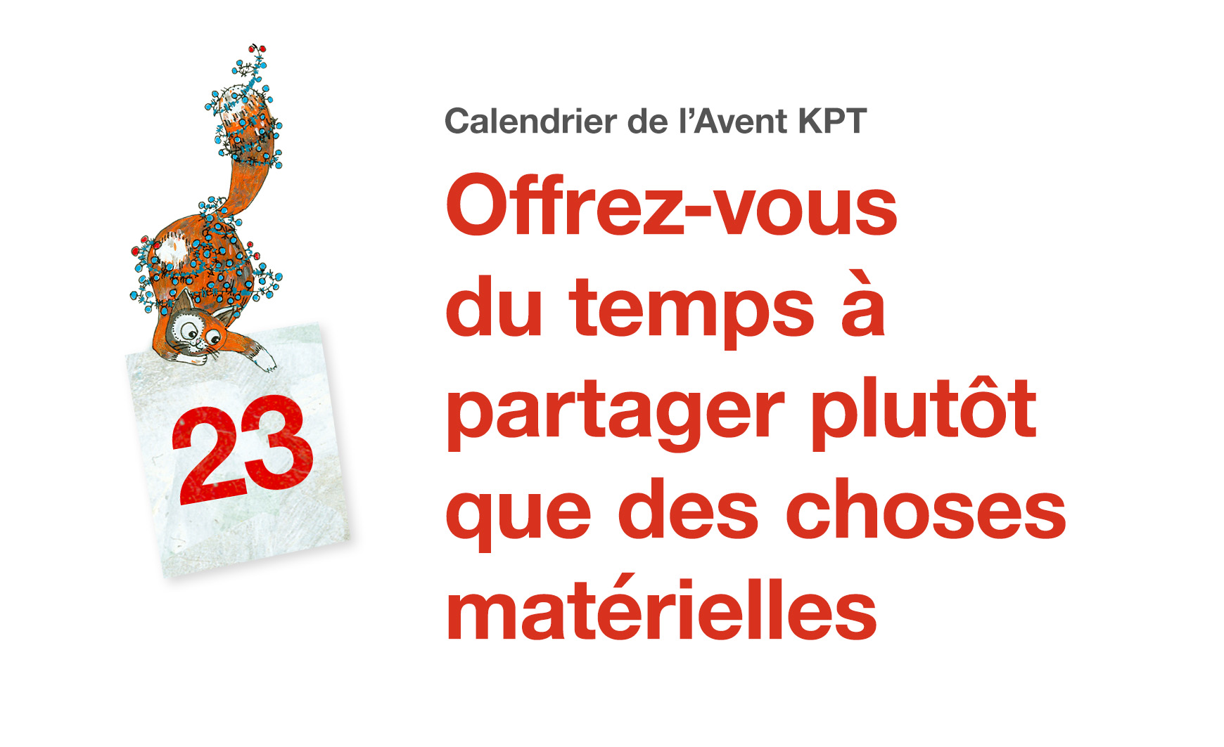 Vous avez mis en pratique une des suggestions de notre calendrier de l’Avent? Parlez-nous-en. Si vous le pouvez aujourd’hui, prenez un instant pour faire le bilan. Décrivez ce que le partage et la proximité d’autres personnes déclenchent en vous et la façon dont vous vous investissez personnellement dans votre vie sociale. Cela vous satisfait-il? Y a-t-il quelque chose que vous aimeriez changer? Nous vous souhaitons de tout cœur un joyeux Noël.