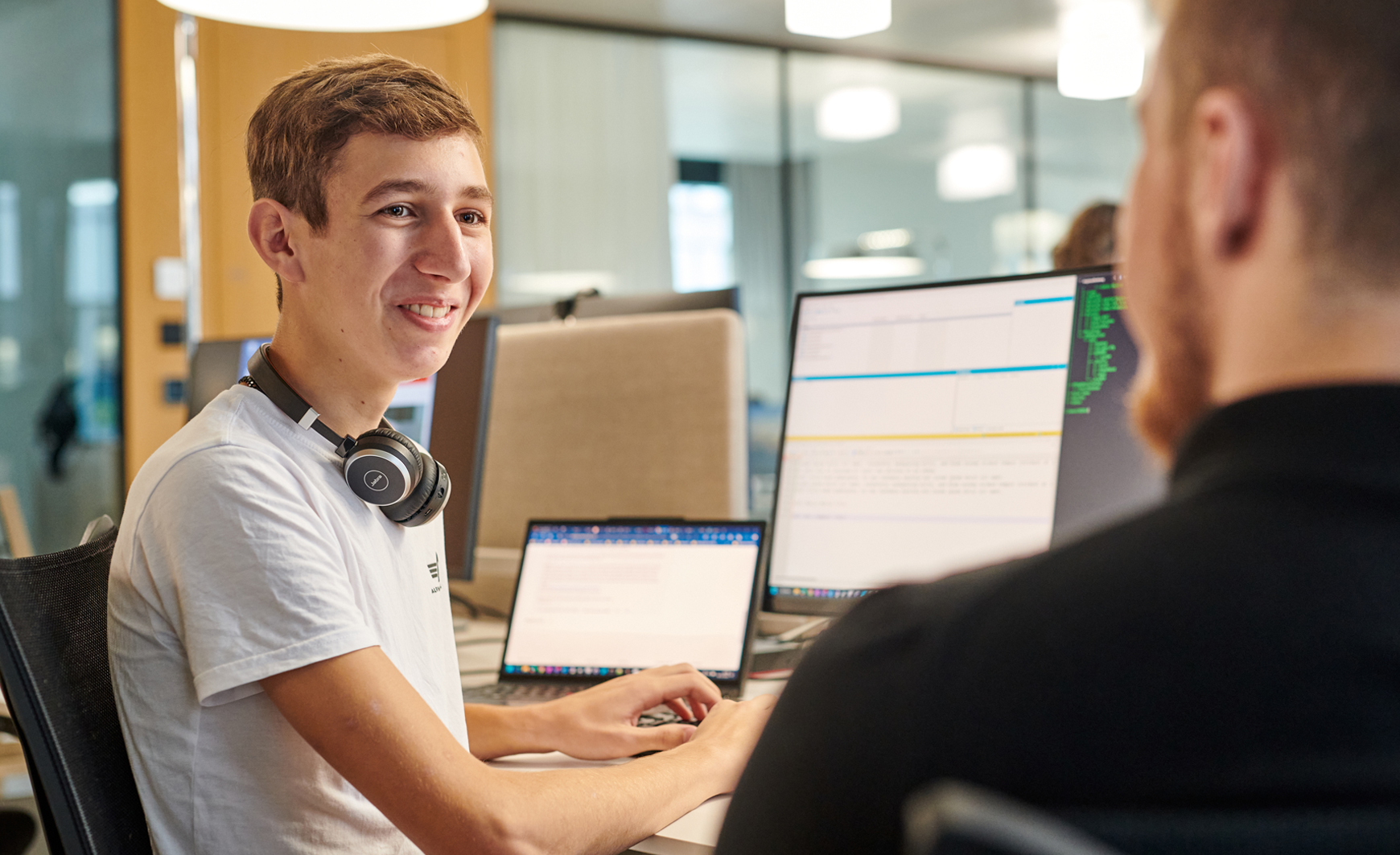 Après l’année d’apprentissage de base au centre de formation professionnelle de Berne, tu commenceras au sein de notre équipe chargée du développement d’applications. Tu auras un aperçu passionnant de différents domaines de notre IT, par exemple la gestion de projet ou le test de logiciels et l’automatisation. Au cours du dernier semestre, l’accent sera mis sur l’élaboration de ton travail pratique individuel, qui fait partie de l’examen final. En parallèle, tu pourras même passer la maturité professionnelle en cours d’apprentissage (MP1) chez nous. Tu aimerais concilier apprentissage et sport? Pas de problème, c’est également possible chez nous.