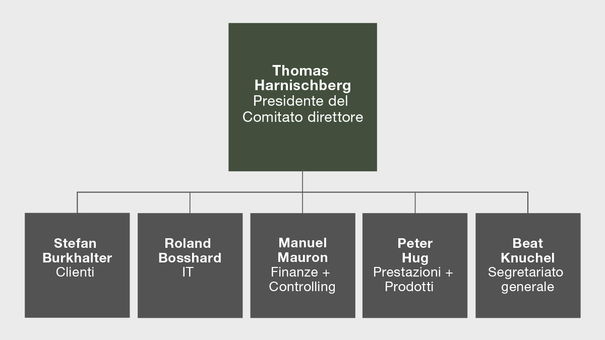 Comprendiamo i reparti Human Resources, Diritto, Affari pubblici e Compliance nonché le unità operative Protezione dei dati, Funzioni Assurance e Servizio di ricezione dei dati. Il segretariato generale del Comitato direttore garantisce un’interfaccia ben funzionante tra il Consiglio d’amministrazione, il Comitato direttore e i settori.