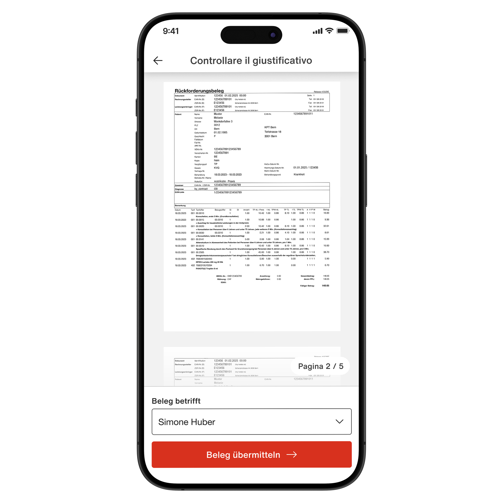 Inoltre, l’app KPT vi permette di fotografare le fatture mediche e altri documenti e inviarli in tutta semplicità, senza più bisogno di usare lo scanner.