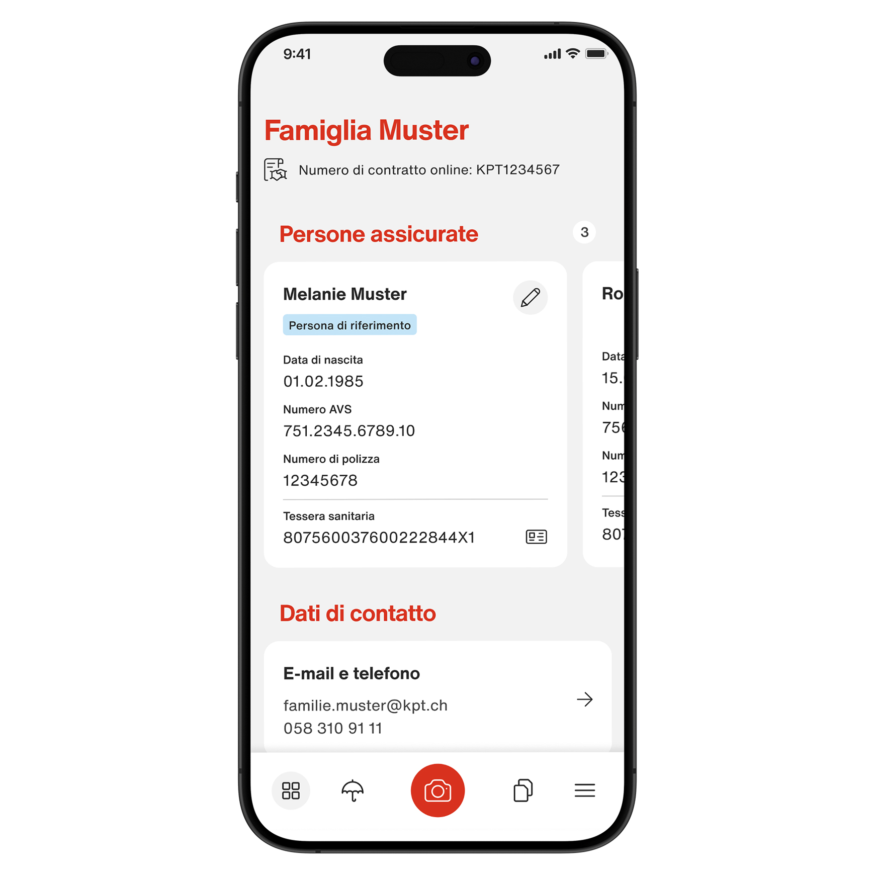 Con l’app KPT potete accedere ai vostri dati assicurativi da ovunque e in qualunque momento. Potete fotografare le fatture del dottore e inoltrarle, modificare autonomamente i dati personali e avere un contatto diretto con la vostra consulente o il vostro consulente personale. Inoltre, avrete sempre sotto mano tutte le informazioni su prestazioni, franchigia e aliquota percentuale.