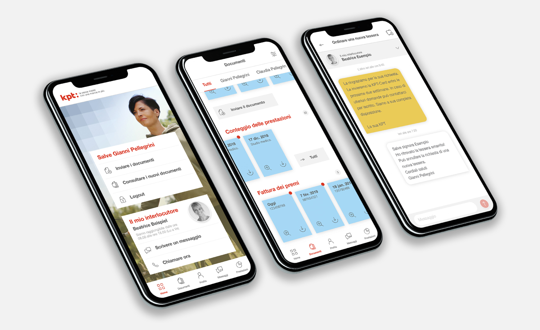 L’app KPT permette di accedere al portale clienti KPTnet anche in mobilità. Grazie all’app KPT sbrigate l’amministrazione della cassa malati in tempi record – sempre e ovunque. Le fatture possono essere semplicemente fotografate e caricate. Inoltre, avete sempre con voi la KPT-Card in formato digitale. Se avete domande, le potete inviare direttamente ai nostri consulenti clienti usando la funzione di messaggistica.