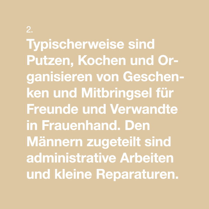 Ci tengo a sottolineare che il problema riguarda tutti, indipendentemente dal genere, dalla professione o dallo stato civile. Tuttavia, i genitori single e con poco sostegno sociale sono esposti a un carico mentale maggiore. Succede più spesso alle madri che ai padri, perché si assumono più responsabilità e sono più presenti nelle mansioni di cura e come sostegno emotivo per gli altri membri della famiglia. In pratica: hanno in mano le redini della famiglia, organizzano e pianificano – i mariti danno una mano, ma non condividono il lavoro di pianificazione.