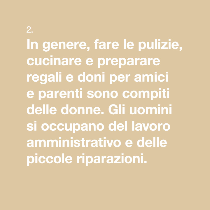 Quando si tratta di faccende domestiche, gli uomini tendono a percepire i propri compiti come meno importanti. La responsabilità percepita è quindi minore rispetto alle donne. Se la vivono come un peso, poi, tendono a mantenere a freno le emozioni. Non danno importanza alla cosa e non cercano aiuto. Le donne, invece, ne parlano. Danno più importanza all’argomento.